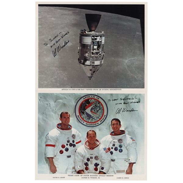 Official color glossy 8 x 10 red-numbered (S92-50603) NASA photo of Young wearing a flight suit featuring his numerous mission patches, with four spac