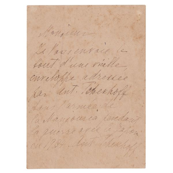 Original ink sketch by Palmer of one of his famous Brownie characters on an off-white 4 x 2 slip, signed in ink, "Palmer Cox, Brownieland, 1913...