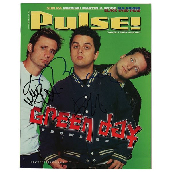Pulse magazine from November 2000, 88 pages, 8.25 x 10.5, signed on the front cover in felt tip by Billie Joe Armstrong, Mike Dirnt, and Tre Cool. In