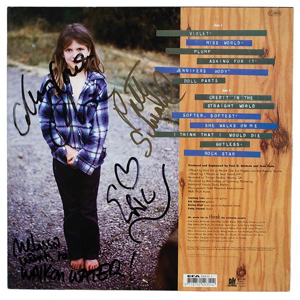 Live Through This album Hole, signed on the back cover in black felt tip, "Courtney Love Cobain," "Eric ," and "Melissa [A...