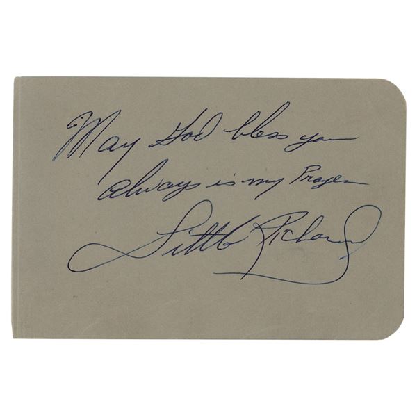 Vintage circa mid-1960s ballpoint signature, "May God bless you always is my prayer, Little Richard,†on a gray 6 x 4 album