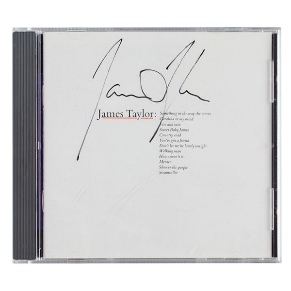 Greatest Hits CD by James Taylor, who has signed the front cover in black felt tip. In fine condition. The CD is included. Accompanied by an unused ...