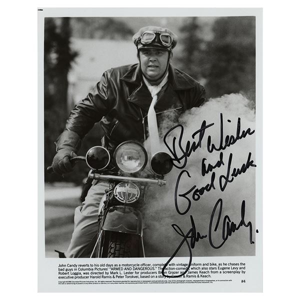 Glossy 8 x 10 promo photo of Candy as Officer Frank Dooley in the 1986 comedy Armed and Dangerous, signed in black felt tip, "Best Wishes and G...