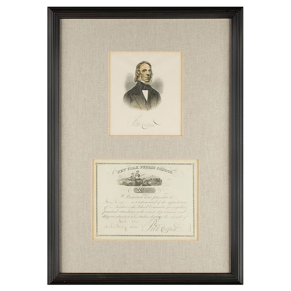 Partly-printed DS, one page, 8.75 x 6.75, March 1846. New York Public School certificate, in part: "This Premium was presented to Maria Nunns a...