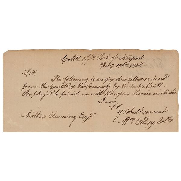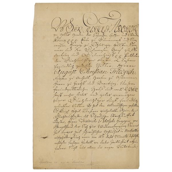 Ink signature, "James II,†on an off-white 6.25 x 1.5 slip. In fine condition, with scattered light foxing. Accompanied by