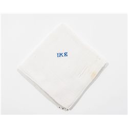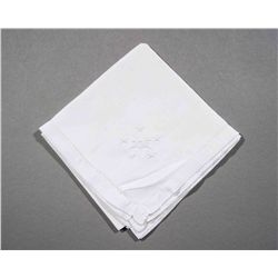 President Truman’s personally-owned and -used simple off-white linen handkerchief, folded into a 9 x 5 triangle, embroidered in white thread as a facs