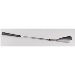 President Truman’s personally-owned and -used flashlight with a chrome and red plastic handle, measuring 7? long, with a metal spring-like protector s