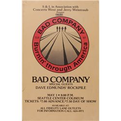 Original color 14 x 21.75 poster for the band’s May 1, 1977, show at the Seattle Center Coliseum on their Burnin’ Through America tour, with special g