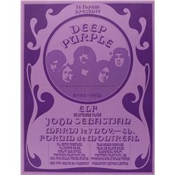 Original color 17 x 22 poster for Deep Purple’s November 7, 1972, concert at the Montreal Forum, with special guest John Sebastian. Poster, in French,