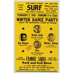 Color 14 x 22 reproduction poster for the final Winter Dance party starring Buddy Holly, Ritchie Valens, the Big Bopper, and Dion, held on February 2,