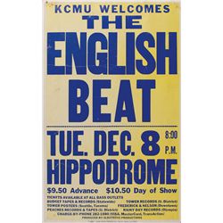 Original color 13.75 x 22 for the English Beat’s December 8 concert at the Hippodrome, printed by the Colby Poster Printing Company and presented by K