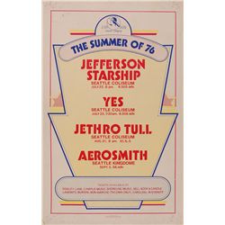 Original color 14 x 22 poster for the “Summer of 76” concert series presented at the Seattle Coliseum and Kingdome by the John Bauer Concert Company.