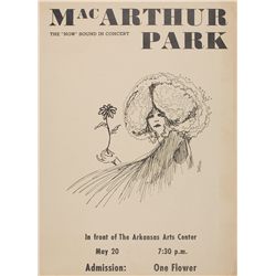 Original 16 x 22 concert poster for MacArthur Park “in front of The Arkansas Arts Center,” with an admission price of “one flower.” In very good condi