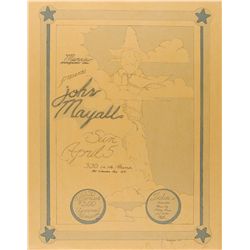 Original 18 x 22.75 poster for an April 5, 1970, Mayall concert, featuring artwork by Joe Spencer and printed by Catfish Studios. In fine condition, w