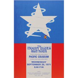 Window card poster for the Moody Blues show at the Pacific Coliseum during their USA tour, September 29, 1971,14 x 22, featuring a patriotic design. I