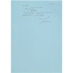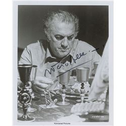 Glossy 8 x 10 seated photo of Kazan in a state of concentration, signed in black felt tip. Reverse bears an affixed photo caption for the 1969 film Th
