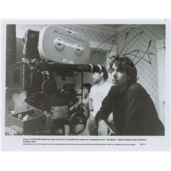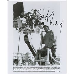 Glossy 8 x 9.75 Columbia Pictures publicity photo of Spike Lee behind the scenes of the 1988 film School Daze, signed in black felt tip. In fine condi