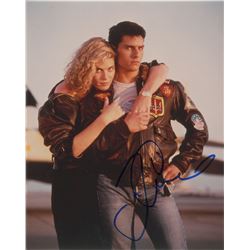 Color glossy 8 x 10 photo of Kelly McGillis and Tom Cruise from the 1986 film Top Gun, signed in blue felt tip by Cruise. In fine condition, with an u