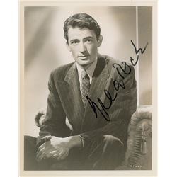 Exceptional semi-glossy 8 x 10 seated photo of Peck early into his acting career, signed in black felt tip. In fine condition, with a few light crease