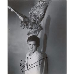 Terrific glossy 7 x 8.5 photo of Norman Bates standing below a taxidermied owl, signed in black felt tip by Perkins. In fine condition. From the Harve