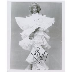Glossy 8 x 9.75 photo of Rivers wearing an elaborate dress by designer Arnold Scaasi, signed in black felt tip by the comedienne. In fine condition. F