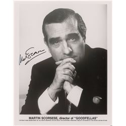 Ideal glossy 8 x 10 Warner Brothers publicity photo of the director of the 1990 film Goodfellas, signed in black felt tip by Scorsese. In very fine co
