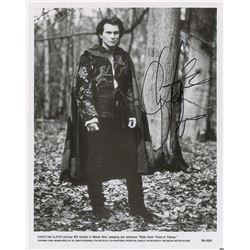 Glossy 8 x 10 Warner Brothers publicity photo of Slater as Will Scarlett from the 1991 film Robin Hood: Prince of Thieves, signed in black felt tip. I