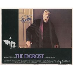 Color Warner Brothers lobby card for the 1973 horror film The Exorcist, 14 x 11, signed in blue felt tip by Max von Sydow. In very fine condition. Fro