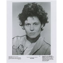 Glossy 8 x 10 Twentieth Century Fox publicity photo of Weaver as the iconic sci-fi heroine Ellen Ripley from the 1986 film Aliens, signed in black fel