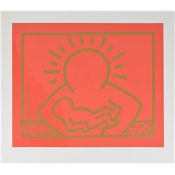 Color 22 x 18.5 silkscreen print entitled 'A Very Special Christmas' made by Keith Haring in 1987, produced in an unnumbered edition of abou...