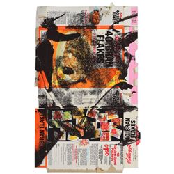 Original one-off 'Cow' screen print by Warhol on an unfolded cereal box for Kellogg's 40% Bran Flakes, 13 x 19.5, signed and inscribed o...