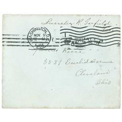Wife of President James Garfield (1832–1918) and First Lady from March to September 1881. Hand-addressed and free franked mailing envelope, 4 x