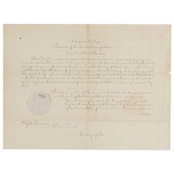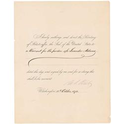 Partly-printed DS, one page, 8 x 10, October 18, 1872. President Grant orders “the Secretary of State to affix the Seal of the United States to