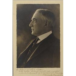 Vintage matte-finish 10.5 x 15.75 Harris and Ewing profile portrait, signed and inscribed in fountain pen “To Albert and Flora Lasker, With high