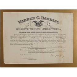 Partly-printed DS as president, one page, 17.75 x 13, February 2, 1923. President Harding appoints Marion F. Boatwright to the position of Postmaster