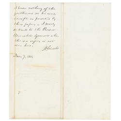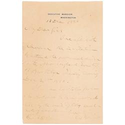ALS signed as president “R. B. Hayes,” one page, 4.5 x 6.75, Executive Mansion letterhead, December 13, 1880. Hayes, in the last months of