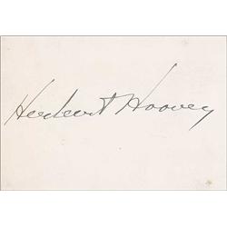 Ink signature, “Herbert Hoover,” on a 3 x 2 card. In fine condition, with mounting remnants on reverse. Pre-certified John Reznikoff/PSA/D