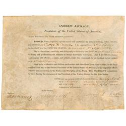 DS as president, one page, 11 x 8.5, August 26, 1830. President Jackson appoints George F. Emmons to the position of Midshipman in the Navy, signed at
