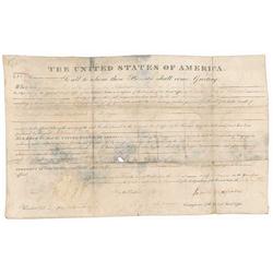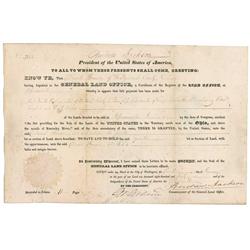Partly printed DS, one page on vellum, 15.75 x 9.5, June 1, 1824. A grant for 80 acres of land in Howard Country, Missouri issued to Thomas A. Smith,