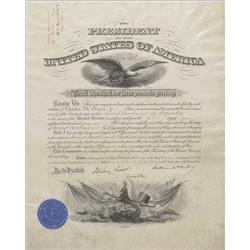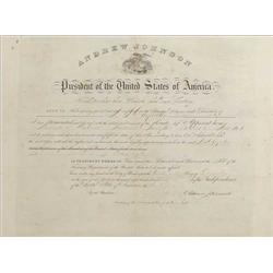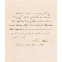 Partly-printed DS as president, one page, 8 x 10, September 18, 1868. President Johnson orders “the Secretary of State to affix the Seal of the