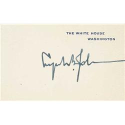 Extremely rare signed White House card, nicely signed in bold blue fountain pen, “Lyndon B. Johnson.” Accompanied by the original unaddres