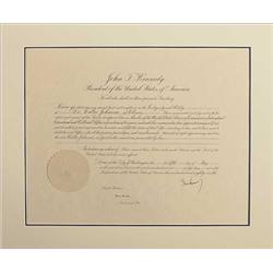 Partly-printed DS as president, one page, 19.25 x 15.25, May 12, 1962. Kennedy appoints Dr. Walter Johnson of Illinois “a Member of the United S