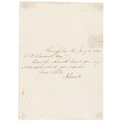 LS signed “A. Lincoln,” one page, 5.25 x 7.5, January 4, 1861. Brief letter to F. F. Rockwell complying with an autograph request. In full
