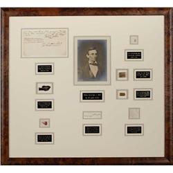 Remarkable Lincoln reliquary spanning his life, from his early legal career to his assassination consisting of: an ink signature, as president, &...