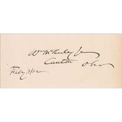 Ink signature, “Wm. McKinley, Jr., Canton, Ohio, Feby. 3/82,” on an off-white 6.5 x 3 trimmed album page. In fine condition, with a thin v