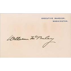 Two signed Executive Mansion cards, signed in ink, “William McKinley,” and “Ida S. McKinley,” respectively. Accompanied by an