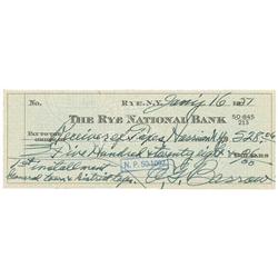 General manager of the New York Yankees (1868–1953) from 1920 to 1945. Bank check, 7.75 x 2.75, filled out and signed by Barrow, “E. G. Ba