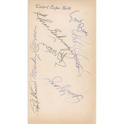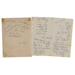 Over 30 vintage ballpoint signatures of the 1955-56 Cleveland Browns (including four Football Hall of Fame members) on three sheets, two lined 4 x 7 a