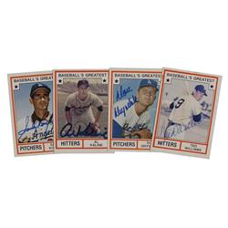 Four Topps Baseball’s Greatest baseball cards, each signed on the front in felt tip or ink by the respective Hall of Famer pictured: Ted William