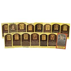 Fifteen Hall of Fame plaque cards, each signed in ballpoint or felt tip by the respective Hall of Famer pictured. Signers are: Satchel Paige, Hank Aar